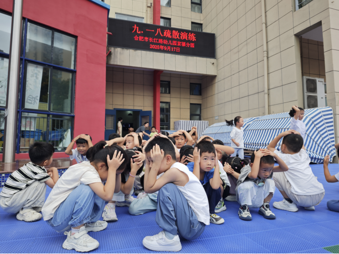 为帮助幼儿铭记历史、勿忘国耻,同时增强其突发紧急事件中的逃生自救能力,并进一步提升全体教职工应对突发事件的应急处置水平,合肥市长江路幼儿园教育集团总园在2025年9月18日上午开展了“九一八”防空疏散演练。