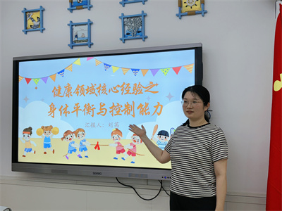 本周的教研内容由刘茜老师带领学习健康领域核心经验之身体平衡与控制能力。刘老师提到平衡能力包括静态平衡能力和动态平衡能力,常见的动作有窄道移动、旋转、悬垂、闭目行走、滚动,需结合幼儿年龄特点设计分层游戏活动,确保安全且贴合幼儿发展需求。老师们通过学习,理解并掌握幼儿平衡与控制目标,为后期全面、准确地把握幼儿发展状况奠定基础。