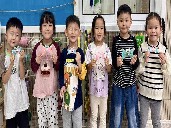 当一只只形态各异的 “蝴蝶” 在孩子们手中诞生时,他们的脸上洋溢着自豪与喜悦的笑容。有的孩子轻轻捧着自己编织的 “蝴蝶”,仿佛它马上就要振翅高飞了一样;有的孩子则欢快地跑向老师和小伙伴,激动地展示着自己的成果,分享着这份独特的创作喜悦。
