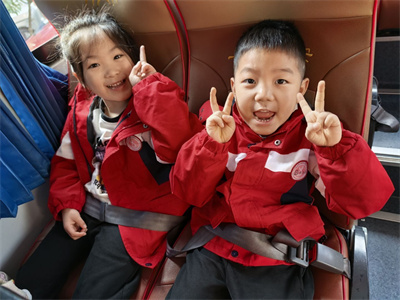 坐上大巴车,一路上,孩子们欢声笑语,沐浴着秋日的阳光,呼吸着清爽的空气,和老师一起观察着路边的各种植物,一起和小伙伴们寻找秋天的小秘密,个个兴奋的小嘴巴都停不下来。我们一起比个“耶”,记录下这美好的时刻吧......
