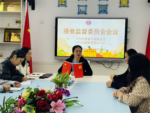 幼儿的健康成长是幼儿园和家长共同关注的焦点,而膳食营养则是幼儿健康的重要保障。为了进一步强化校园食品安全管理,提高膳食质量,保障幼儿的饮食安全和营养均衡,2025年10月30日,合肥市长江路幼儿园教育集团京福分园召开10月份膳食监督委员会暨食堂月调度会、现场办公会。会议由京福园办公室主任刘庆主持,膳食管理人员、教师代表、家长代表、财务人员等参加本次会议。
