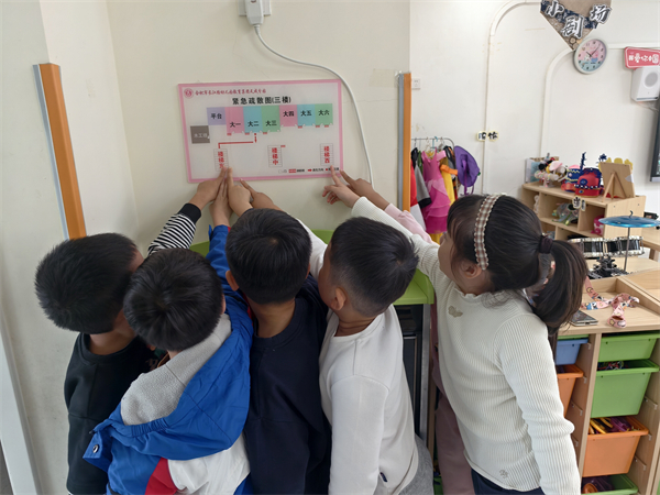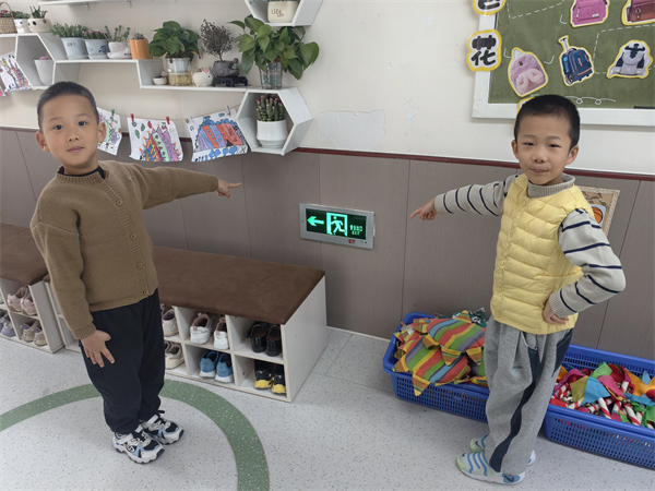童趣满满的 “消防找朋友” 环节开启闯关活动!幼儿们化身 “安全小侦探”,带着好奇在幼儿园走廊、活动室、楼梯间等角落,寻找灭火器、消防栓、安全出口标志等消防安全标识和器材。找到目标后,孩子们兴奋地向老师报告,用稚嫩的语言描述物品模样。教师顺势讲解标识含义与器材用途,帮幼儿建立初步认知。成功完成搜寻任务的幼儿,都开心领到第一枚 “安全勋章” 贴纸,脸上满是成就感。