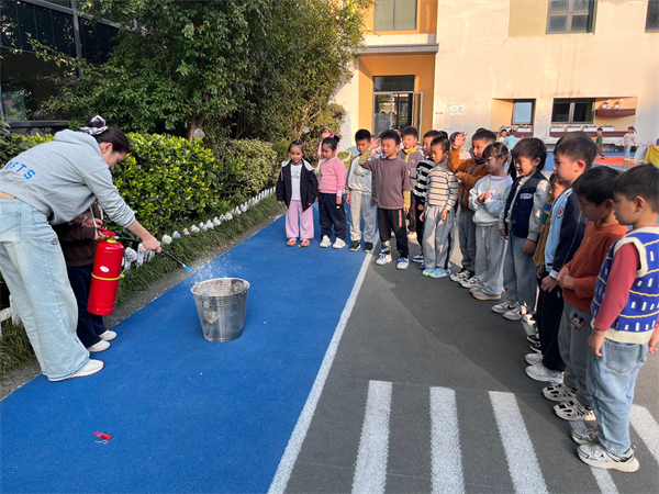 终极关卡“灭火器小能手”聚焦动手实操!教师用通俗语言讲解灭火器“提、拔、握、压”四步法,结合模型演示动作要领。操场搭建模拟灭火场景,幼儿轮流上阵,按所学步骤对准模拟火源根部喷射,成功扑灭“火焰”,斩获第四枚“安全勋章”。四关全部通关后,孩子们胸前贴满闪亮勋章,个个成就感十足,化身合格“消防小卫士”。
