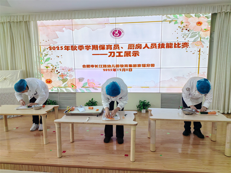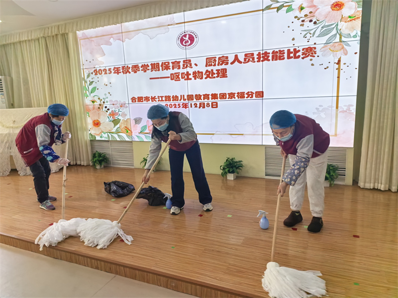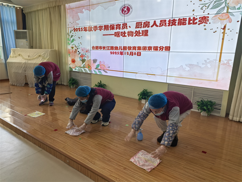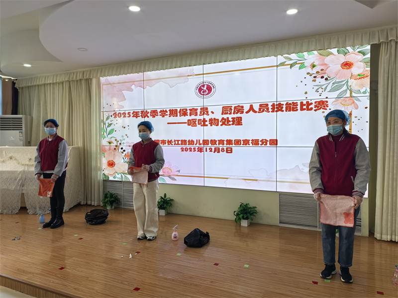 为夯实幼儿园保教工作根基,落实幼儿园健康一体化特色发展要求,全面提升后勤服务队伍专业素养,2025年12月8日中午,合肥市长江路幼儿园教育集团京福分园保育员、厨房人员技能大赛在三楼音乐厅正式拉开帷幕。全体保育员与厨房人员以饱满热情参赛,在竞技中切磋技艺,在交流中共同进步。