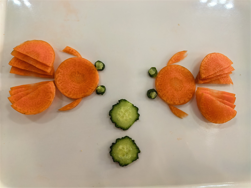 技能实操环节亮点纷呈。厨房人员现场开展限时刀工创意:胡萝卜切配造型比拼。身着统一工作服的他们刀工娴熟,将普通的胡萝卜加工成各式精致造型,展现了扎实的岗位技能;保育员分组进行呕吐物规范处理与早操展示,各年级组动作统一规范,呕吐物处理流程标准、物品准备齐全,充分体现了日常工作的标准化与规范化。