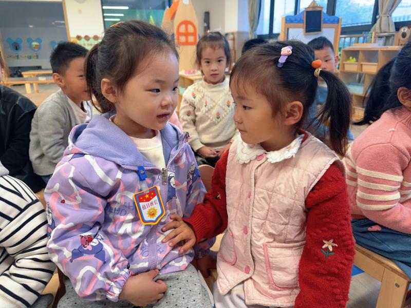 2025年10月以来,在合肥市长江路幼儿园淮北路分园中二班的教室里,每天都有一群戴着“责任小徽章”的孩子们:他们早早到园迎接同伴,细心分发玩具,耐心提醒换鞋,把小小的值日生岗位,变成了充满爱与温暖的“成长小课堂”。这不仅是幼小衔接社会准备的实践,更是孩子们用行动书写的“温暖小日记”。