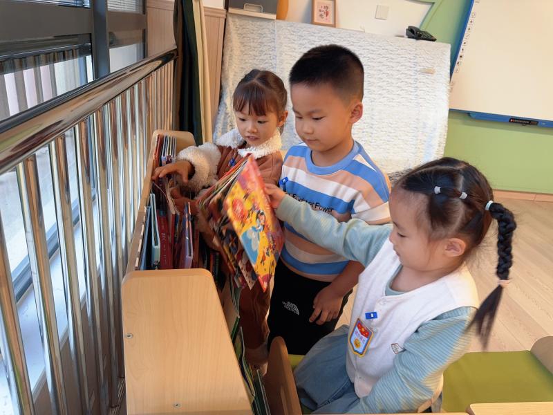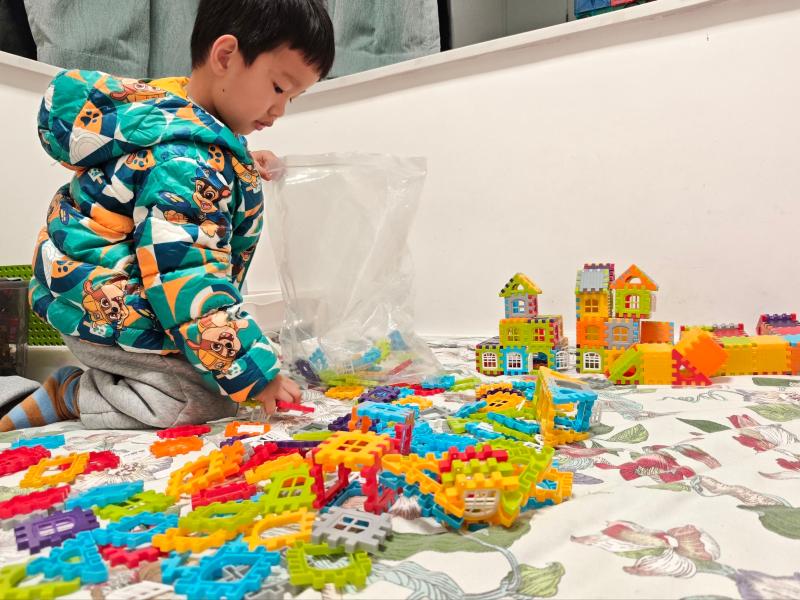 区域活动结束后,他们蹲在地上,把散落的玩具一个个捡起来,叠好的抹布按顺序摆整齐,还会对着整理好的图书角小声说:“书本宝宝回家啦,明天再和小朋友玩。”