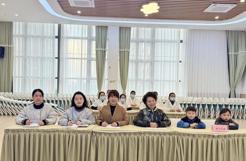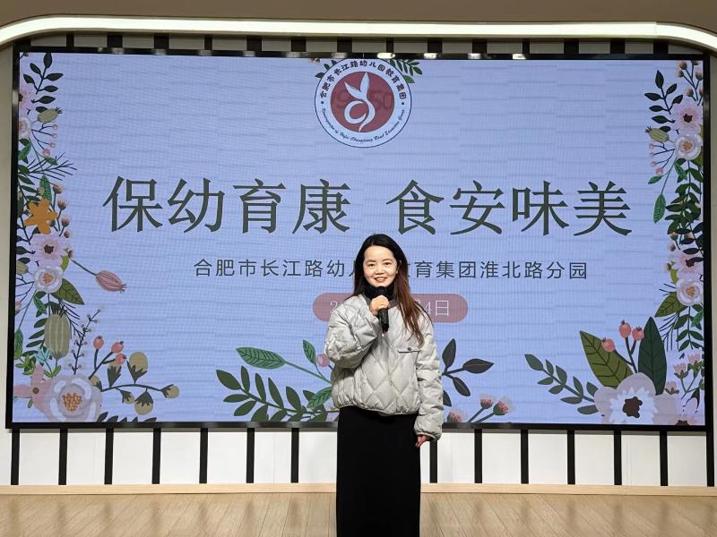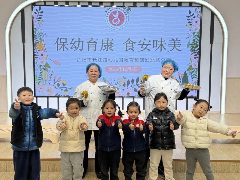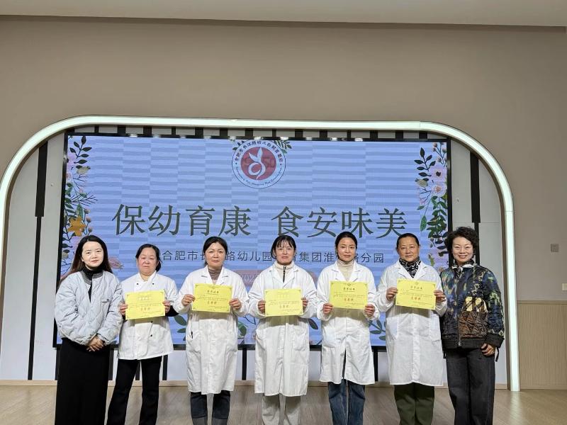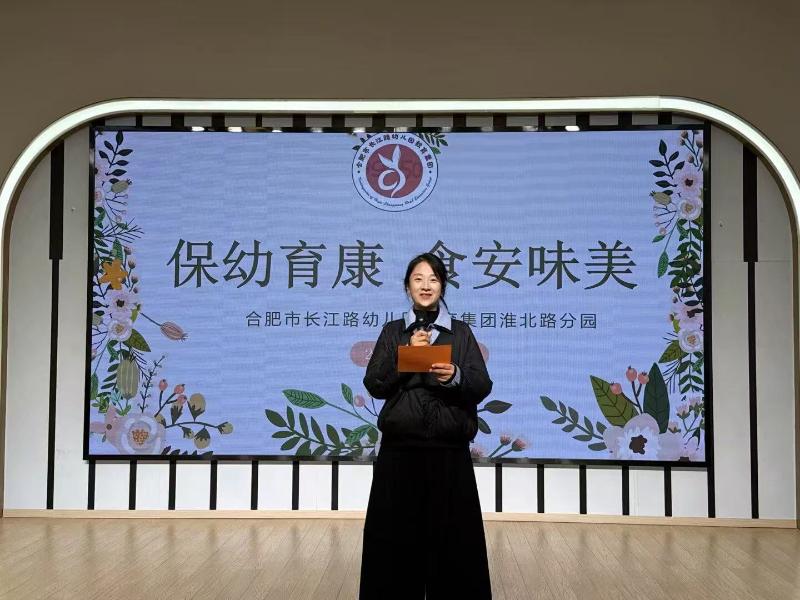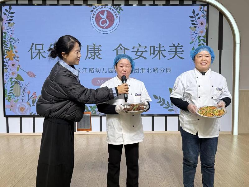 为筑牢校园后勤保障防线,提升保育员、食堂工作人员的专业技能与服务质量,切实落实“保教结合 教养并重”的教育理念。2025年12月4日下午,合肥市长江路幼儿园教育集团淮北路分园举办了一场充满爱与暖意的“保幼育康 食安味美”保育员和食堂人员知识技能大赛。本次大赛由张梅老师主持,淮北路分园执行园长洪蕾、保教负责刘郑红、办公室负责唐瑞以及张红梅老师作为评审组,还从每班选出2名活泼可爱的幼儿代表担任小评委,大家一同见证后勤工作人员的专业与用心。