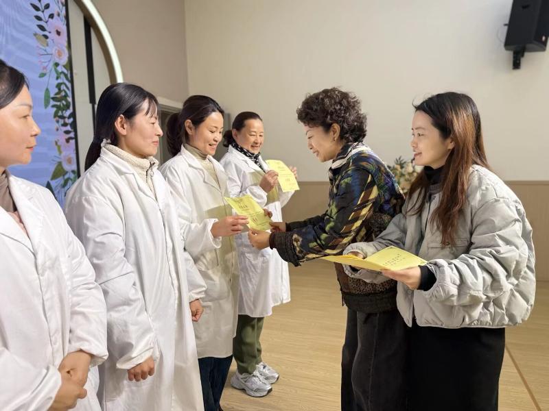 大赛接近尾声,评审团结合理论考试成绩、实际操作表现,再参考小评委们的“口味反馈”,进行了综合打分,评选出特等奖和一等奖。随后,执行园长洪蕾和办公室负责唐瑞为表现优秀的食堂阿姨和保育员们颁发了荣誉证书,小小的证书不仅是对她们专业技能的肯定,更是对她们默默付出的嘉奖。大家接过证书,脸上洋溢着开心的笑容,纷纷表示会把这份荣誉转化为动力,今后更加用心地照顾孩子们。