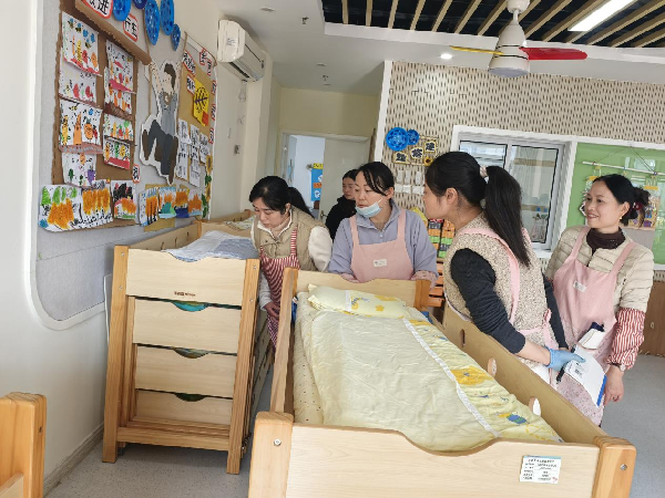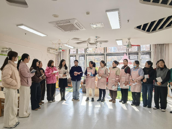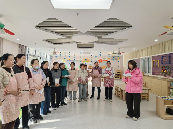 为切实强化幼儿园卫生保育工作质量,为幼儿营造安全、整洁、舒适的成长环境,2025年12月18日,合肥市长江路幼儿园教育集团天成分园开展了保育员卫生环境观摩活动。长幼教育集团党支部副书记、天成分园执行园长余璐,办公室副主任陈晓晔,保健医生杨金梅,教师代表和全体保育老师共同参与本次活动。