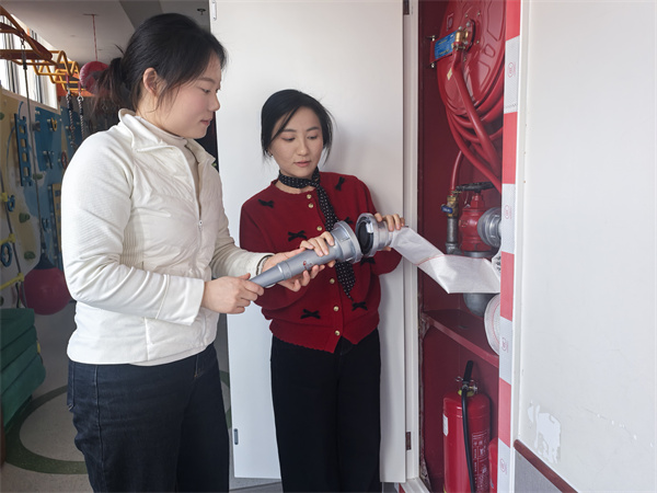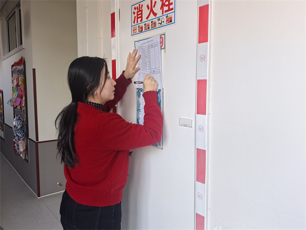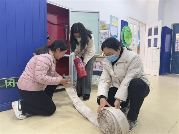 随后,检查组深入园内各重点区域展开细致摸排。在物资储备室与保健室,认真查验了各类物资的有效期,及时清理更新,并着重强调了酒精等易燃消毒物品的专人专柜管理要求。针对冬季气候特点,检查组对户外大型玩具、运动器械进行了全面检查,紧固松动部位,消除结构锈蚀、表面毛刺等潜在风险。同时,对楼内安全出口、疏散通道畅通情况以及消防设施器材完好性进行了再确认,并特别关注了水管、阀门等设施的防冻保温措施落实情况。