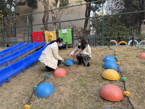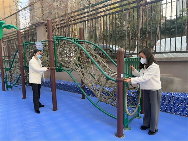 校舍小组深入教室、活动室、户外操场等区域全覆盖排查。检查报警装置、监控系统运行状况。核查室内门窗、桌椅床具稳固性,排查玩具教具隐患。检查户外大型玩具连接处螺丝紧固度与地面防护设施,清理场地杂物,全方位消除设施隐患,保障幼儿返校后拥有安全舒适的学习生活环境。