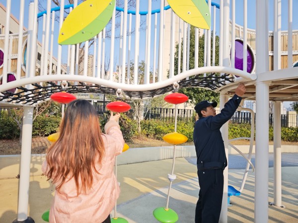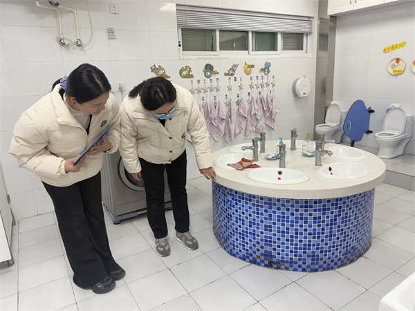 检查组率先开展室内外区域排查。查验门卫室监控设备运行情况,重申外来人员“身份核验+登记备案”制度;对教学楼出入口、楼梯开展检查,确保大门启闭顺畅、楼梯照明正常、扶手牢固,保障疏散通道畅通。教室内检查插座防触电保护、水管密封、家具边角防护,同步测试饮用水及盥洗水温是否适宜;户外检测滑梯等大型游乐设施稳固性,清理场地碎石枯枝。