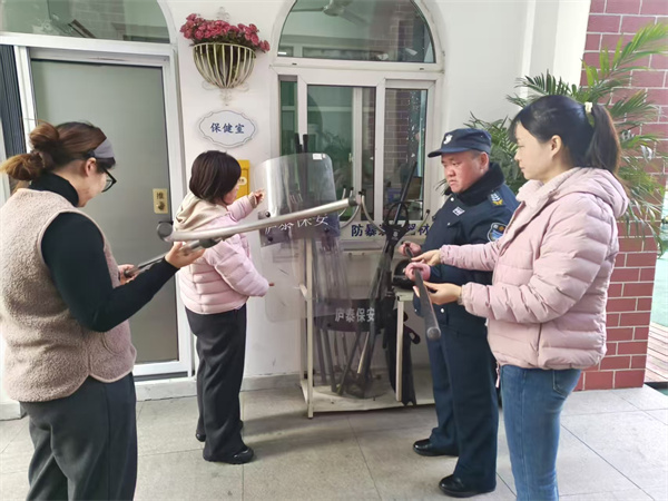 检查组首先从严守校园入口关入手,全力巩固外围安全屏障。工作人员对校门防冲撞设施、围墙围栏进行了牢固性检查,测试了一键式紧急报警装置及视频监控系统的运行状态,确保其响应迅速、覆盖无死角。同时,重点核查了安保器械的配备与维护情况,并现场检视了安保人员对器械使用及突发情况处置流程的熟悉程度。对于外来人员入园管理,检查组再次强调了必须严格执行登记核验制度,切实守好校园安全“第一道关口”。