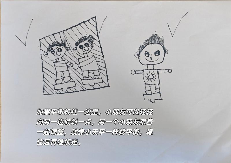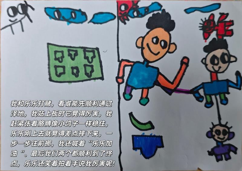 本次平衡板游戏活动,是幼儿掌握基础技巧后自主探究玩法的实践,充分凸显“以幼儿为主体”的理念,实现幼儿动作技能与综合素养的双重提升。活动中,幼儿不满足单人闯关,自发讨论设计新方案,完成从“被动参与”到“主动创造”的转变,激发成就动机,培养独立思考与创新品质。两两结伴运“弹药”深化协作能力;梯度闯关则让幼儿在自主探索、反复尝试中,磨砺勇于挑战、坚持不懈的意志,提升任务执行力。