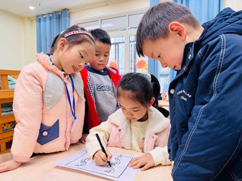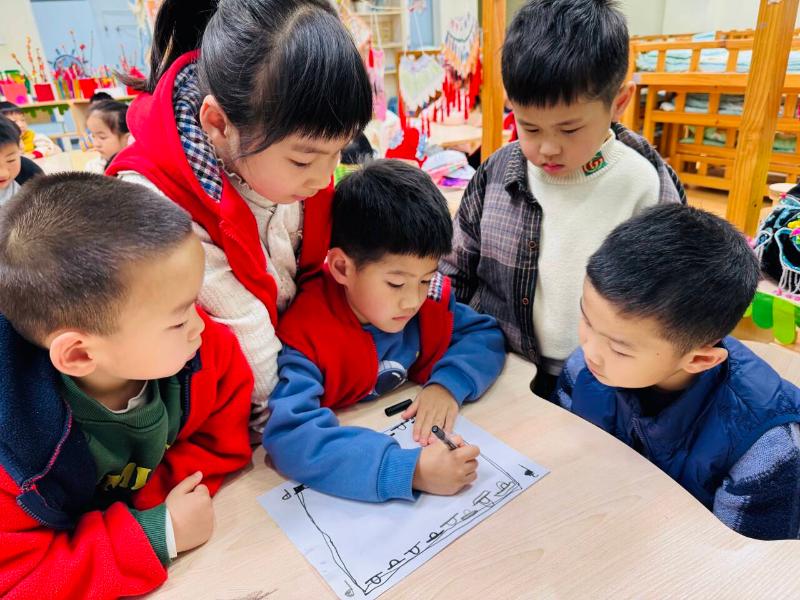游戏结束后,宝贝们回到班级,兴致勃勃地记录下自己的游戏故事。