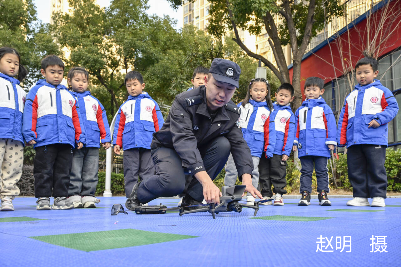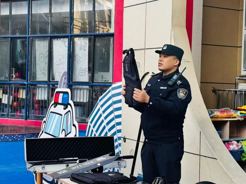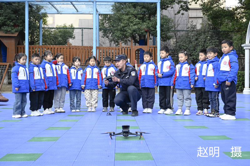 活动的最后,无人机操作员叔叔带来了精彩的无人机演示。随着操作员的操控,无人机缓缓升空,在操场上空盘旋、悬停,还通过低空喊话与孩子们互动。孩子们仰着小脑袋,目不转睛地盯着空中的无人机,感受着科技的神奇力量。操作员叔叔还向孩子们介绍了无人机在巡逻、搜救、取证等方面的作用,让孩子们了解到科技在维护安全中的重要性。