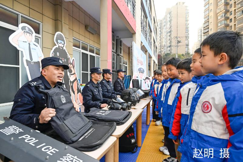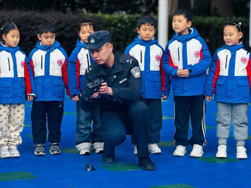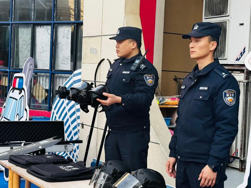 在装备讲解环节,警察叔叔化身“讲解员”,耐心地为孩子们介绍了防暴头盔、防弹衣、防毒面具、警用抓捕器、窥镜等装备的名称和用途。为了让孩子们有更直观的感受,警察叔叔还邀请孩子们轻轻触摸体验,一个个新奇的“秘密武器”让孩子们大开眼界,现场不时响起阵阵惊叹声。