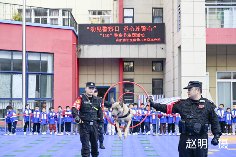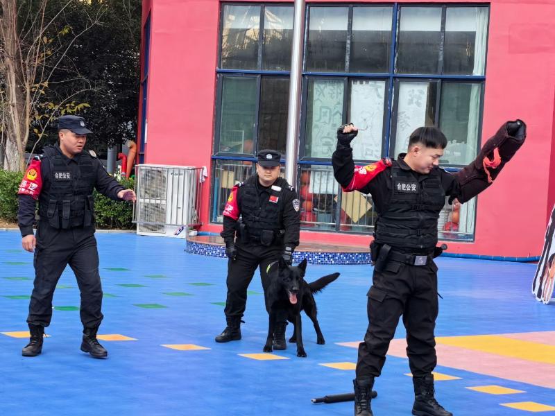 为进一步增强幼儿的安全防范意识,让幼儿近距离感受警察职业的神圣与伟大,在警察节来临之际,2026年1月8日合肥市长江路幼儿园京福分园精心策划了“幼见警察日,童心连警心”主题活动。活动邀请到合肥市公安局庐阳分局特巡警大队的警察叔叔阿姨走进校园,通过装备展示、警犬表演、铁骑体验、无人机演示等丰富多样的形式,为孩子们带来了一场别开生面的安全启蒙教育。