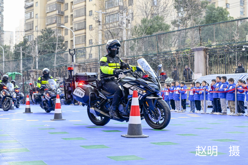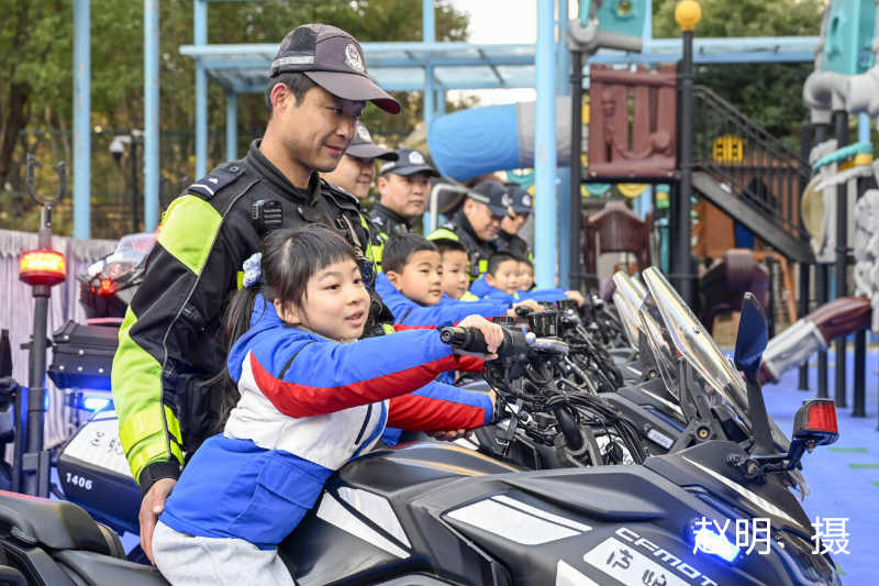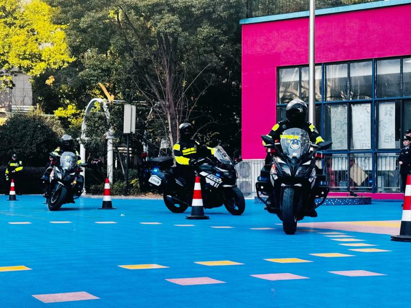 “呜——呜——”伴随着清脆的警笛声,帅气的铁骑叔叔骑着摩托车驶入操场,将活动推向又一个高潮。铁骑叔叔向孩子们介绍了警用摩托车的功能和装备,随后进行了精彩的绕桩表演,娴熟的驾驶技术让孩子们连连称赞。活动现场,几位幸运的小朋友还在铁骑叔叔的帮助下,坐上摩托车,过了一把“小小铁骑手”的瘾,脸上洋溢着幸福的笑容。