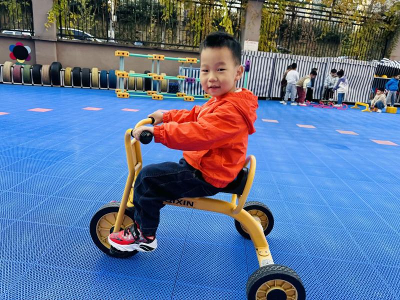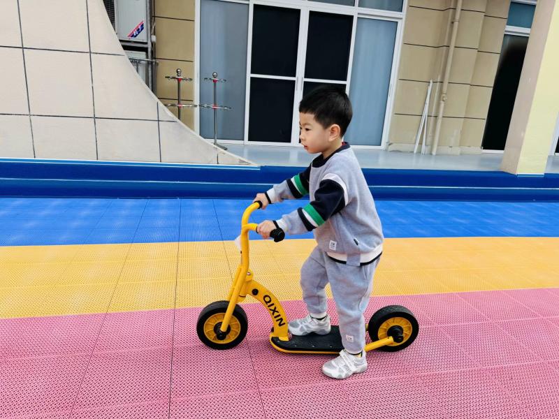 骑行道上,宝贝们骑车迎风驰骋、开展趣味比赛,提升肢体协调与平衡能力,在尝试中收获勇敢自信,尽显 “乐动” 活力;