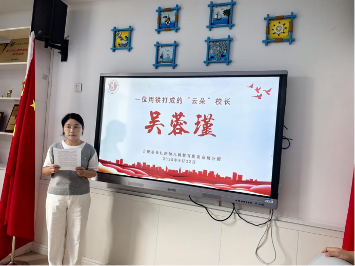 在紧随其后的师德学习环节,全体教师共同聆听了被誉为“云朵妈妈”、“铁打校长”的吴蓉瑾同志的先进事迹。吴蓉瑾校长作为教育战线的时代楷模,数十年如一日坚守基础教育一线,以情感教育滋养学生心灵,用先进的教育理念和信息技术赋能教育教学改革,她爱生如子、忘我奉献、锐意创新的精神深深打动了每一位学习者。她从“云朵妈妈”到“云朵校长”的蜕变,诠释了师爱如云、温润无声又广博深沉的崇高境界。