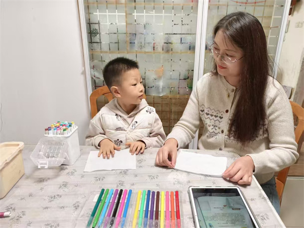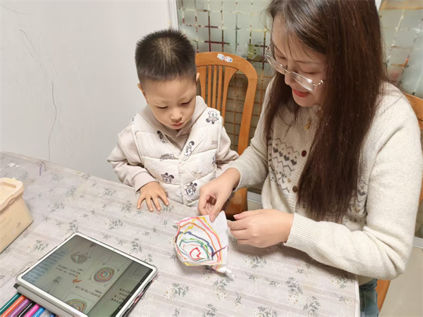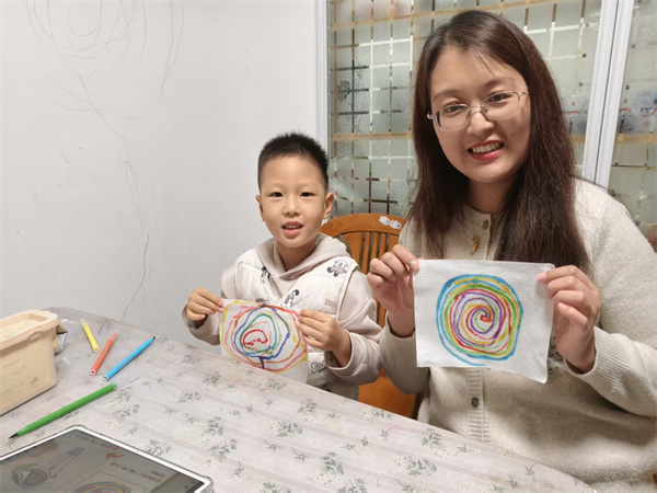 2.拿出彩笔,在纸巾上画出喜欢的图案。