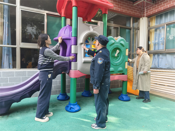 户外游戏区是幼儿每日活动的重要场所,也是此次排查的核心区域。安全小组对户外游乐器械进行“地毯式”检查,逐一查看器械的螺丝、卡扣等连接部位是否松动,器械表面是否存在毛刺、尖锐凸起,塑胶地面是否有破损凹陷,不放过任何一个可能威胁幼儿安全的细节,确保孩子们在户外游戏时能尽情玩耍、无安全顾虑。