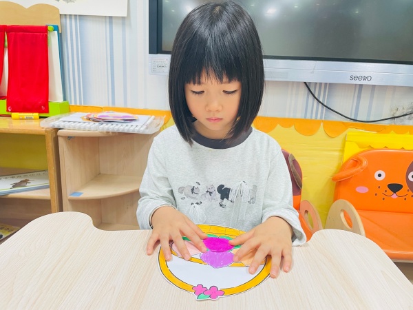 活动前,各年级组教师结合幼儿年龄特点精心设计内容,让传统文化以幼儿易懂的方式落地。小班幼儿先聆听《小熊送礼物》的故事,初步理解敬老内涵;再学唱《给爷爷奶奶敲敲背捶捶腿》童谣,稚嫩歌声搭配模仿捶背敲腿的可爱动作,悄悄播下关爱种子。中班聚焦“识习俗、做孝事”,教师通过登高、赏菊图片及敬老编织画,引导幼儿讨论节日意义,让孩子们懂得这是向长辈表达敬意的重要日子;手工环节中,孩子们用彩色材料认真制作编织画,每一处细节都承载着对长辈的心意。大班围绕“重阳糕”习俗展开,教师结合《九月九日忆山东兄弟》讲解“糕”与“高”的谐音寓意,随后孩子们观察重阳糕图片,用超轻粘土制作出造型可爱的“重阳糕”,细心包装后盼着送给长辈。