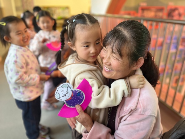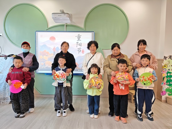 大班围绕“巧手制菊,情赠长辈”展开。老师介绍“菊花是重阳代表花,象征长寿”,随后示范彩纸菊花制作。有的孩子们选奶奶、外婆喜欢的红色、粉色,细致调整花瓣弧度。放学时,孩子们捧着“长寿花”挨在长辈身边,有的对奶奶说“祝您重阳节快乐!这花我做了好久”,有的对外婆说“选了你爱的粉色,好看不?”长辈们搂着孩子笑:“宝贝手真巧!”“外婆心里真甜!”祖孙同框满是幸福。
