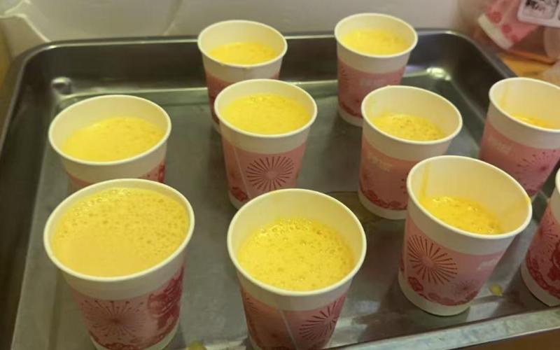第四步:南瓜奶昔煮好后,老师关火晾至适宜温度,并装进一次性纸杯。