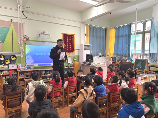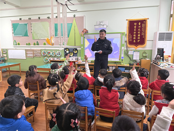 活动伊始,幼儿园特邀逍遥津派出所民警、法治副校长来园,为孩子们带来一堂生动实用的交通安全课。宣讲围绕幼儿日常出行场景,用通俗易懂的语言讲解了如何安全过马路、认识红绿灯与斑马线、避开车辆盲区等基础知识。黄警官通过有趣的互动问答和直观的手势教学,带领孩子们学习简单的交通指挥手势,并模拟演示了安全乘车、规范使用安全带的正确方法。他鼓励孩子们争当“家庭安全小使者”,带动家人共守交规,以“孩子带动家庭”的方式延伸安全教育成效。