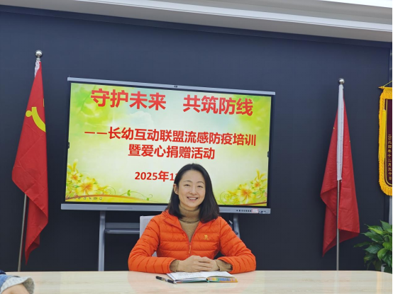 在范彦冰老师的主持下,活动拉开帷幕。首先,长幼互动发展联盟盟主丁婕发表开场致辞。她强调,儿童是流感高发季的重点易感人群,联盟各园需凝聚共识、协同发力,以专业防护知识为孩子们的健康保驾护航,同时希望通过爱心传递,让互助友爱的种子在联盟内生根发芽。