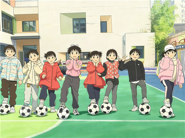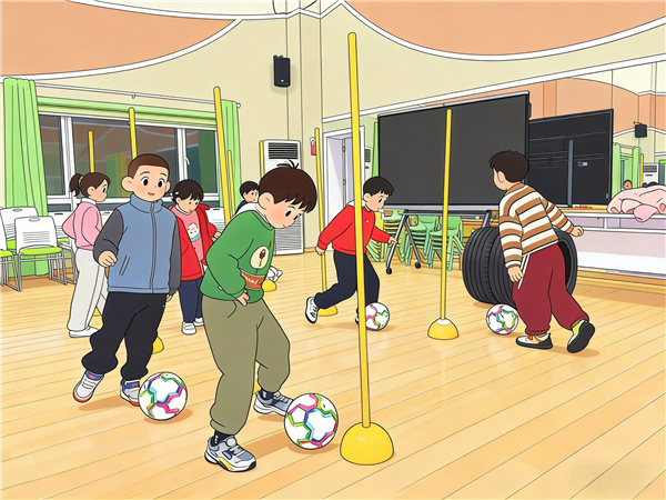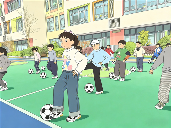与此同时,大班孩子们的足球游戏展示排练也在操场上热闹上演。小球员们身着整齐的服装,在老师的带领下认真操练。传球时的默契配合、带球时的灵活躲闪、射门时的奋力一跃,每一个动作都尽显童真与活力。老师们巧妙地将民间游戏融入足球游戏中,让这场艺术节的展示更具独特韵味。孩子们在奔跑跳跃中挥洒汗水,在团队协作中体会快乐,专注的眼神里闪烁着自信的光芒,灿烂的笑容在冬日的阳光下格外耀眼。