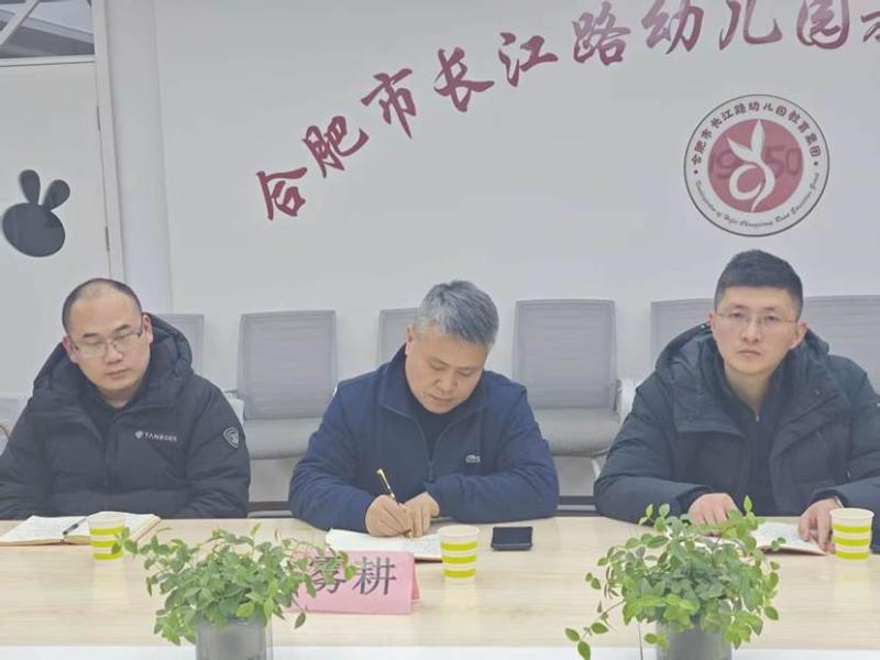为规范大宗食材供应链管理、提升配送服务质量、筑牢食品安全防线,2026年1月14日下午,合肥市长江路幼儿园教育集团在总园一楼会议室组织召开“大宗食材供应商期末交流座谈会”。集团党支部书记、总园长丁婕带领集团食品安全相关负责人,与大宗食材供应商安徽雾耕供应链管理有限公司以及合肥庐阳国有资产经营有限公司的代表,进行了三方联合会议。本次会议由总园办公室负责人董红主持。