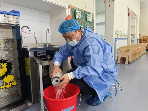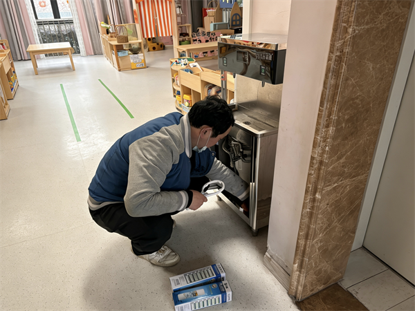 水是生命之源,更是幼儿健康成长的重要保障。为从源头保障幼儿饮水安全,各园对所有班级的饮水机进行全面检修,逐一拆除旧滤芯、仔细清洗饮水机内部管道、内胆,再精准安装全新滤芯,确保滤除水中的杂质、异味及有害微生物。从“源头”到“出口”,为孩子们的健康饮水筑牢第一道防线。