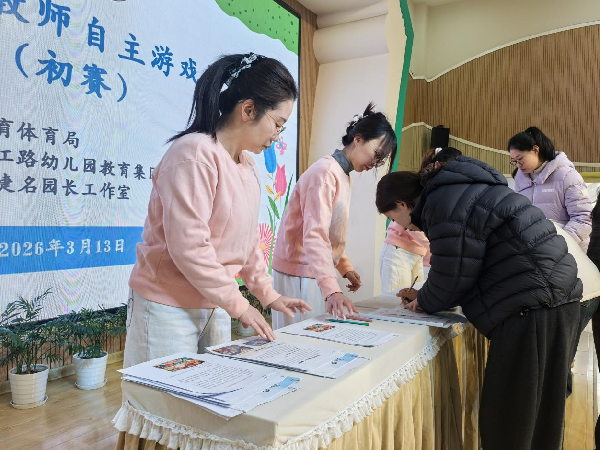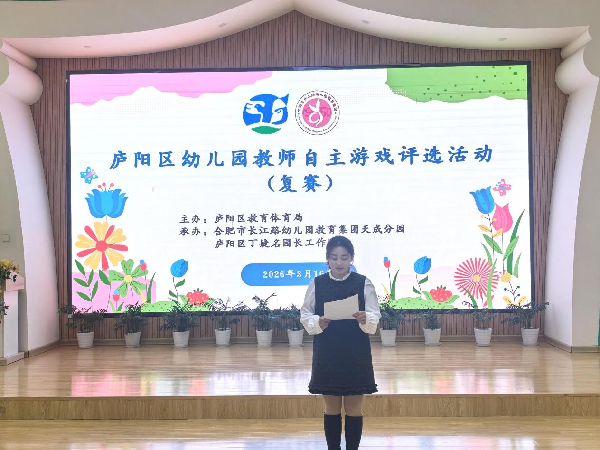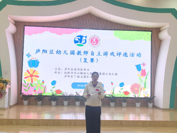 为深入践行《3-6岁儿童学习与发展指南》理念,坚持以游戏为幼儿基本活动,切实提升教师观察、解读与支持幼儿自主游戏的专业能力,2026年3月13日-17日,由合肥市庐阳区教育体育局主办,庐阳区丁婕名园长工作室、合肥市长江路幼儿园联合承办庐阳区幼儿园教师自主游戏评选活动,在长幼天成分园顺利举行。本次活动特邀专家团队担任评委,全区50名幼儿园教师代表齐聚赛场参与评比。