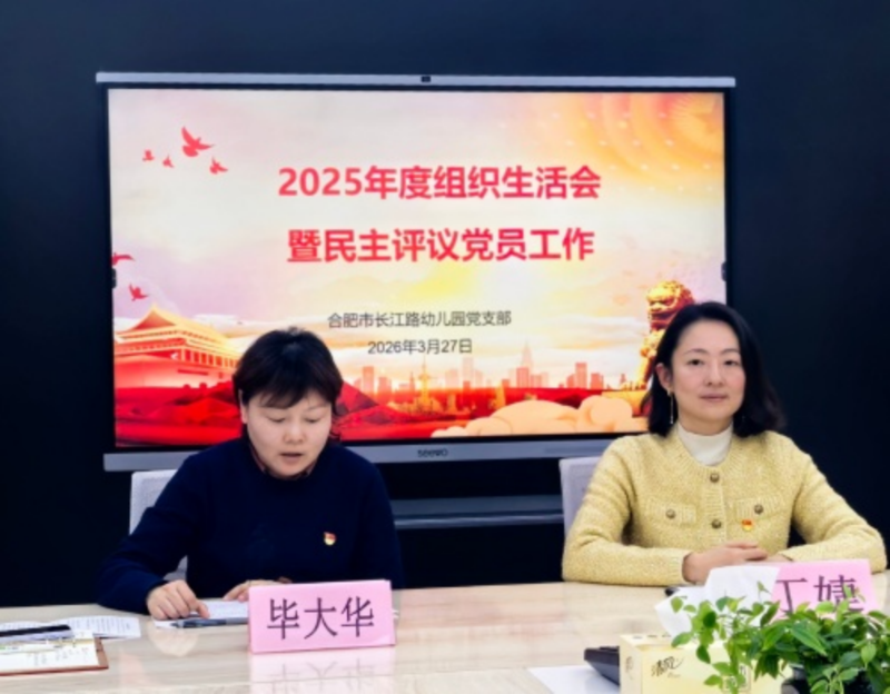 为深入学习贯彻习近平新时代中国特色社会主义思想,全面落实党的二十届四中全会精神,强化党支部领导班子建设,提升干部履职能力与作风水平,2026年3月27日,合肥市长江路幼儿园党支部召开2025年度组织生活会暨民主评议党员大会。庐阳区教体局幼教教研员毕大华作为督导组成员出席会议并指导工作,会议由长幼党支部书记丁婕主持,全体党员教师参加会议。