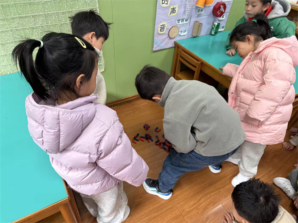 幼儿以冰箱贴为切入点,自主猜想并实验磁铁能吸附的物品,通过对钥匙、塑料积木等材料的操作,自主发现磁铁只吸铁制品的特性。他们还在班级内自由验证,开展家庭“磁铁寻宝”,将探究延伸至生活。