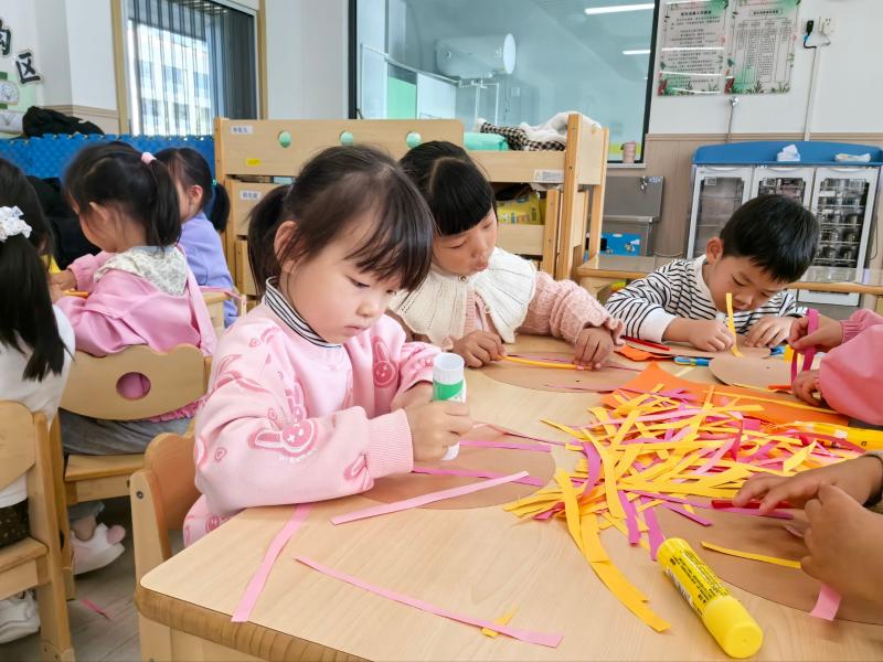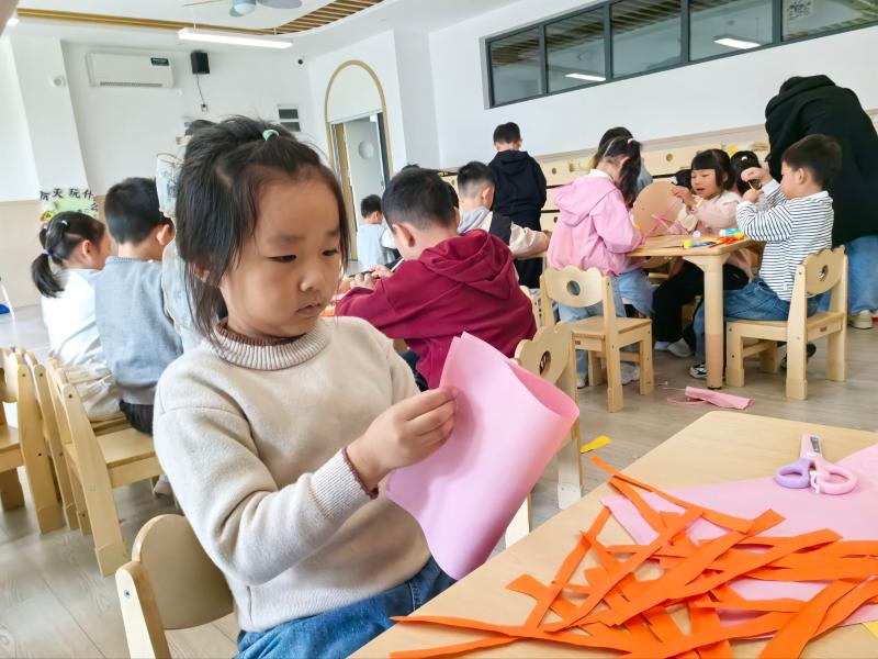 “感恩卡DIY”活动中,孩子们充分发挥创意,用彩纸、剪刀、胶水、亮片等材料,精心制作专属感谢卡。有的画上和爸爸妈妈的温馨瞬间,有的写下对老师的祝福话语,有的用稚嫩的画笔勾勒出与同伴的快乐游戏场景。一张张色彩斑斓的卡片,虽笔触笨拙,却满载着孩子们最真挚的情感。